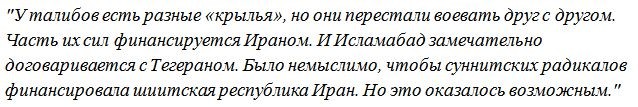 Сатановский добавил, что «талибы» никуда не делись, и их никто не победил, при этом сославшись на недостаток внимания к Пакистану, который долгое время покровительствовал радикальным исламистам. Эксперт называет ситуацию «Секретом Полишинеля», подчеркнув важность дальнейшего развития событий в аспекте диалога американской администрации с Пакистаном. Впрочем, по его мнению, компетенция руководства США в данном вопросе крайне сомнительна.