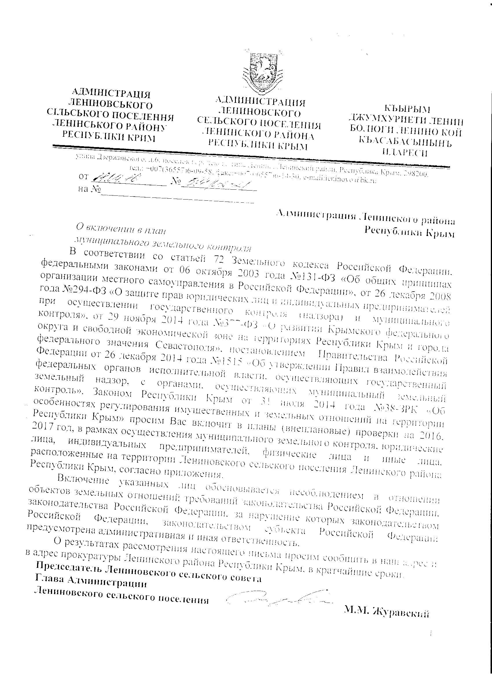 По данному поводу председатель Лениновского сельского совета Михаил Журавский обращался в прокуратуру и неоднократно направлял запросы главе Ленинской районной администрации о включении в план проведения муниципального земельного контроля деятельности субъектов предпринимательской деятельности, однако по состоянию на данный момент мер реагирования предпринято не было.