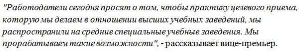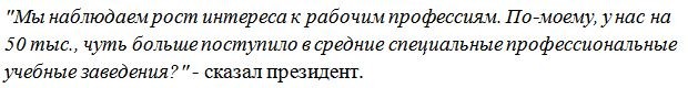 Со словами российского лидера также согласилась вице-премьер Ольга Голодец. Она отметила, что при приеме в колледжи, куда пошло учиться 2,8 млн человек, заметен ощутимый рост конкурса по целому ряду профессий.