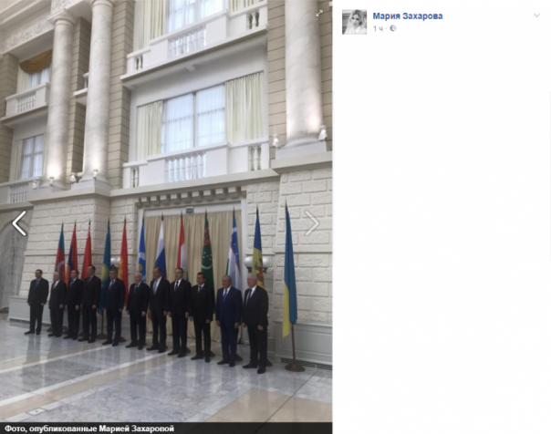 На фотоснимке все представители стоят под флагами своих стран и только украинское знамя одиноко стоит сбоку.