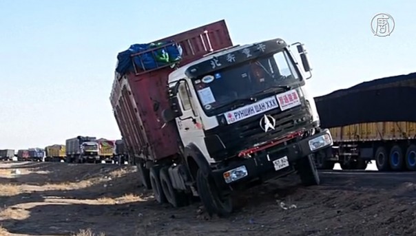 Тысячи гружёных углем фур образовали 130-километровую пробку в монгольской пустыне Гоби, на границе с Китаем. Километровые очереди вызваны ажиотажем вокруг трансграничной торговли.