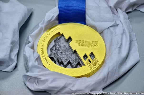 Для Олимпиады в Сочи в 2014 году было изготовлено 1300 медалей. Толщина каждой медали составляла 1 см, диаметр — 10 см. Вес каждой медали составлял от 460 до 531 г в зависимости от достоинства награды. Вес каждой золотой медали был 460 граммов. Они были сделаны из серебра. На их позолоту было использовано 3 кг золота 999-й пробы.