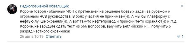 Странно, но кроме самого Криницына, о зарубежной практике РСБ больше никто не упомянул, в том числе и в тех странах, где ЧОПовцы Криницына теперь якобы, то суда от пиратов стерегут, то высокопоставленных лиц Азии, Африки и Европы охраняют. Разве что только сам глава РСБ Олег Криницын подбрасывает информацию через СМИ, мол, наши люди и повоевать могут при необходимости.