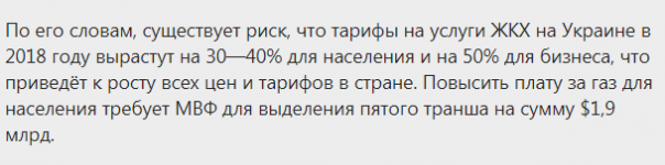 Неутешительные данные за 2017 года продемонстрировала экономика самостоятельной и независимой Украины. Она развивалась в разы хуже, чем это было запланировано. Еще в начале декабря глава Нацбанка Дмитрий Сологуб заявил, что в 2018 году инфляция составит от 12,2% до 13,6%. Ожидается также спад в аграрном секторе за счет более низкого урожая поздних зерновых и технических культур. Это важно, так как на сельхозпродукцию приходится практически 50% экспорта.