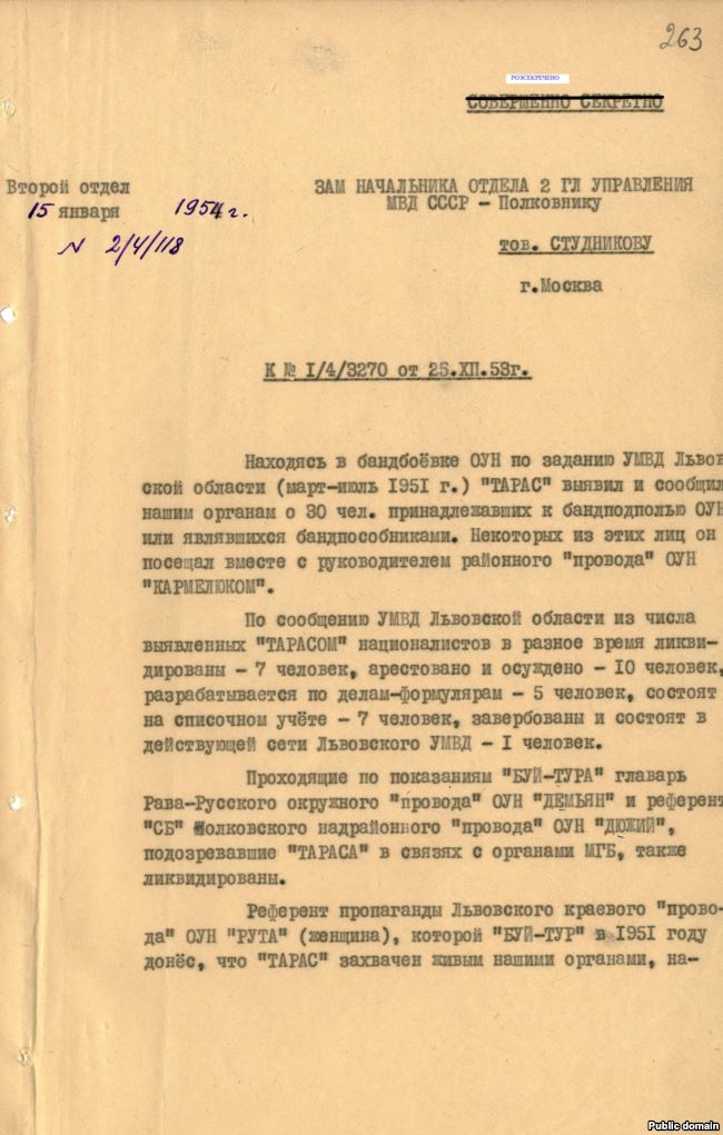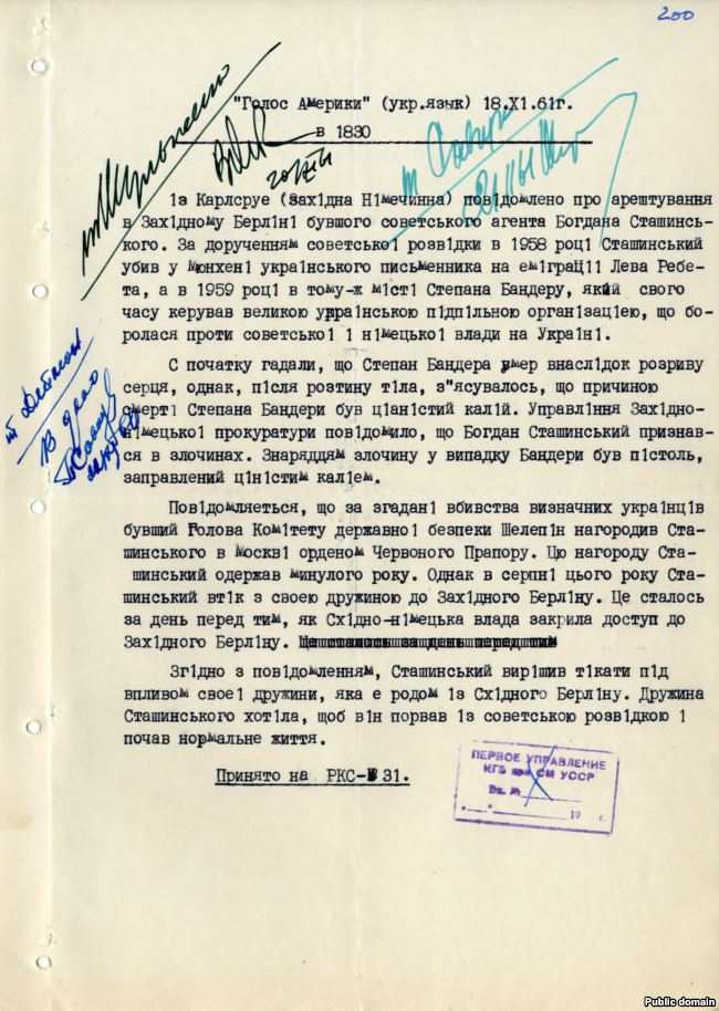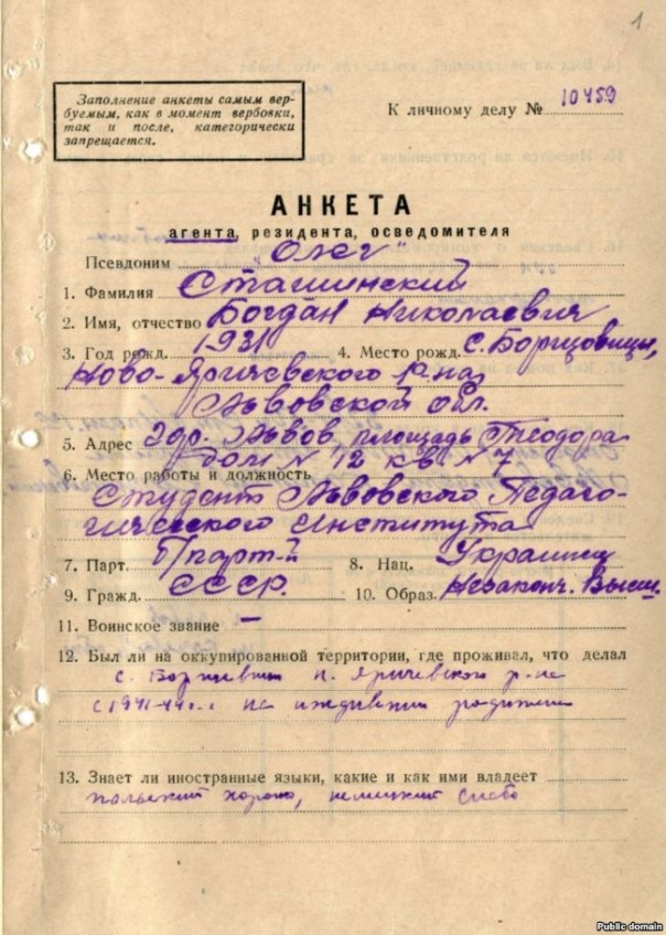 Материалы дела агента МГБ-КГБ Богдана Сташинского («Олега-Тараса»), который 15 октября 1959 года из специального пистолета выстрелил струей раствора цианистого калия в лицо Степану Бандере, теперь доступны всем пользователям интернета.