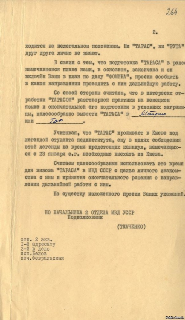 В материалах второго тома Богдан Сташинский уже получает новое агентурное имя «Тарас». Именно агент под этим именем фигурирует в отчетах о проникновении в националистическое подполье с последующим рассекречиванием повстанческих «отрядов», арестами и расстрелами.