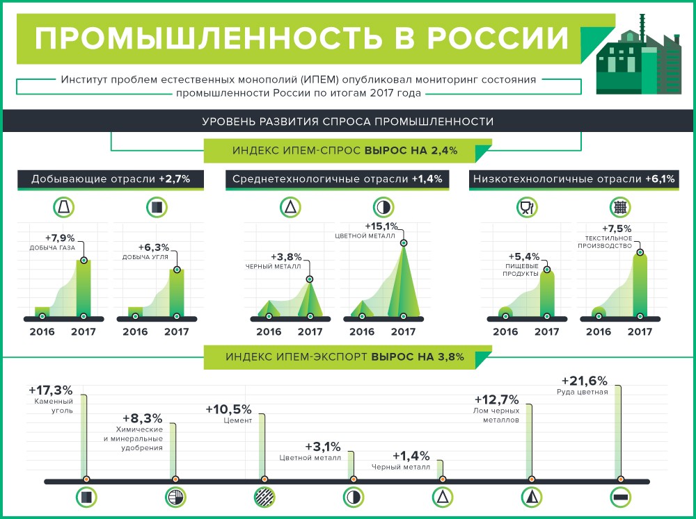 Если растёт производство, значит, вырос и спрос. По данным «Института проблем естественных монополий», спрос на российскую промышленную продукцию достиг рекордных показателей за последние 5 лет.