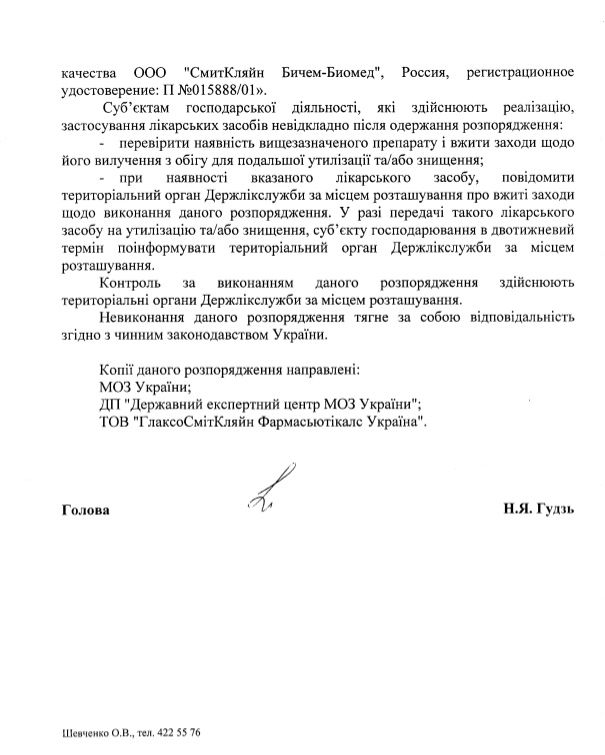 МОЗ поручил реализаторам вакцины изъять ее из обращения для дальнейшей утилизации или уничтожения. Источник