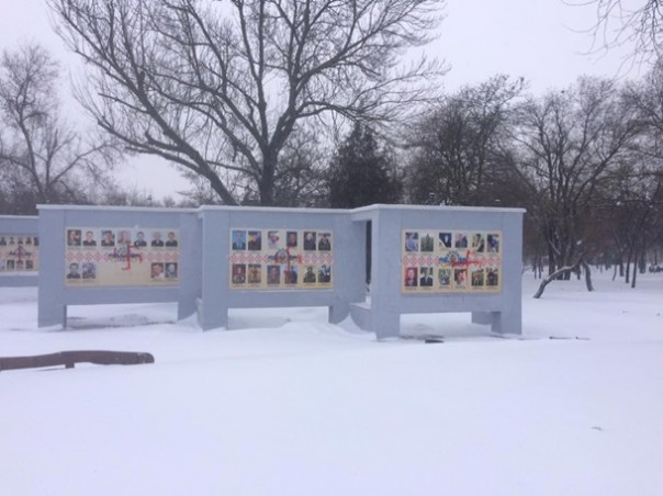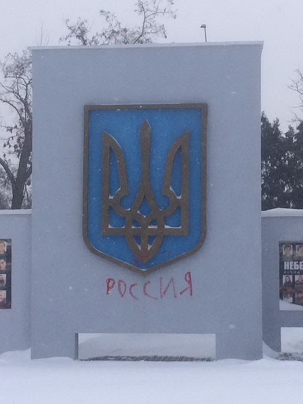 Сегодня ночью неизвестные разрисовали свастикой портреты украинских боевиков т.н. «АТО» и написали «Россия» под украинским гербом на мемориале «героям небесной сотни» в Херсоне.