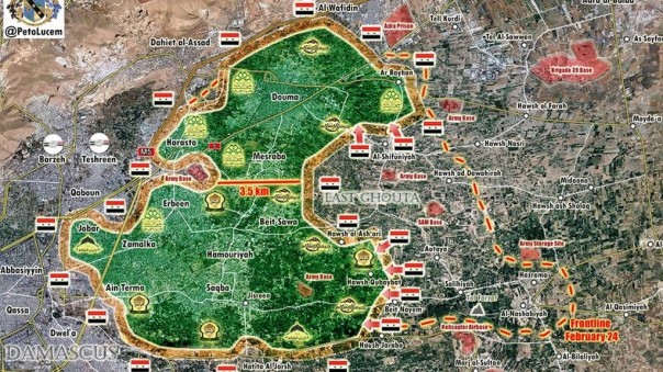 Президент Сирии Башар Асад во время вчерашнего интервью заявил, что военная операция в Гуте будет продолжена с соблюдением необходимых гуманитарных пауз и коридоров. Стоит отметить, что сейчас правительственные войска находятся всего в 2 км от окраины Думы и в 3,5 км от Базы управления транспортных средств в Харасте.