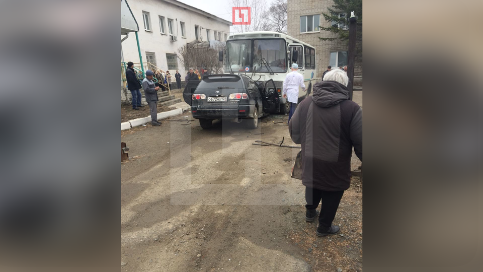 В селе Вольно-Надеждинское Приморского края Toyota Caldina на полной скорости влетела в ограждение больницы, пробила его и врезалась в автобус ПАЗ, в котором сидели инвалиды.