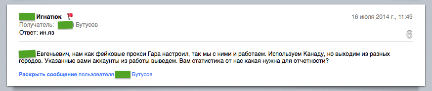 В том числе и на международном уровне. Бутусов берет подряд на украинских ботов, здесь целая цепочка писем, поэтому их следует расположить по хронологии, чтоб было удобнее читать.