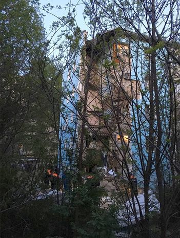 В доме обвалилась часть кирпичной кладки на углу здания. Источник