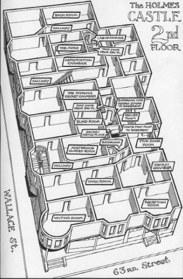 По словам Джеффа Маджета, родственник-убийца выкупил недвижимость вокруг аптеки, объединил здания и сделал из этого гостиницу, которую местные прозвали замком. Часть здания использовалась под торговые площади, а на двух верхних этажах был его офис и лабиринт смерти: а именно десятки комнат без окон, лестницы, которые вели в никуда, а двери можно было открыть только снаружи.
