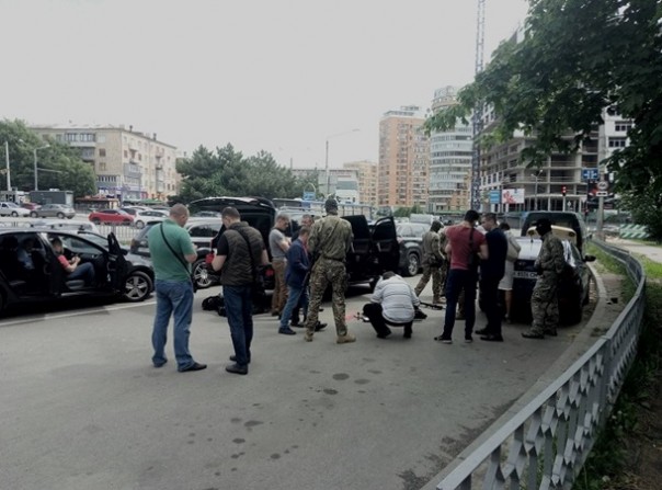"На месте происшествия сейчас находятся сотрудники СБУ, прокуратуры и патрульной полици. На асфальте возле остановленного джипа лежит оружие – предположительно винтовка М16, дробовик и пистолет Макарова, а также патроны и транзитные автомобильные номеры красного цвета", – говорится в сообщении.