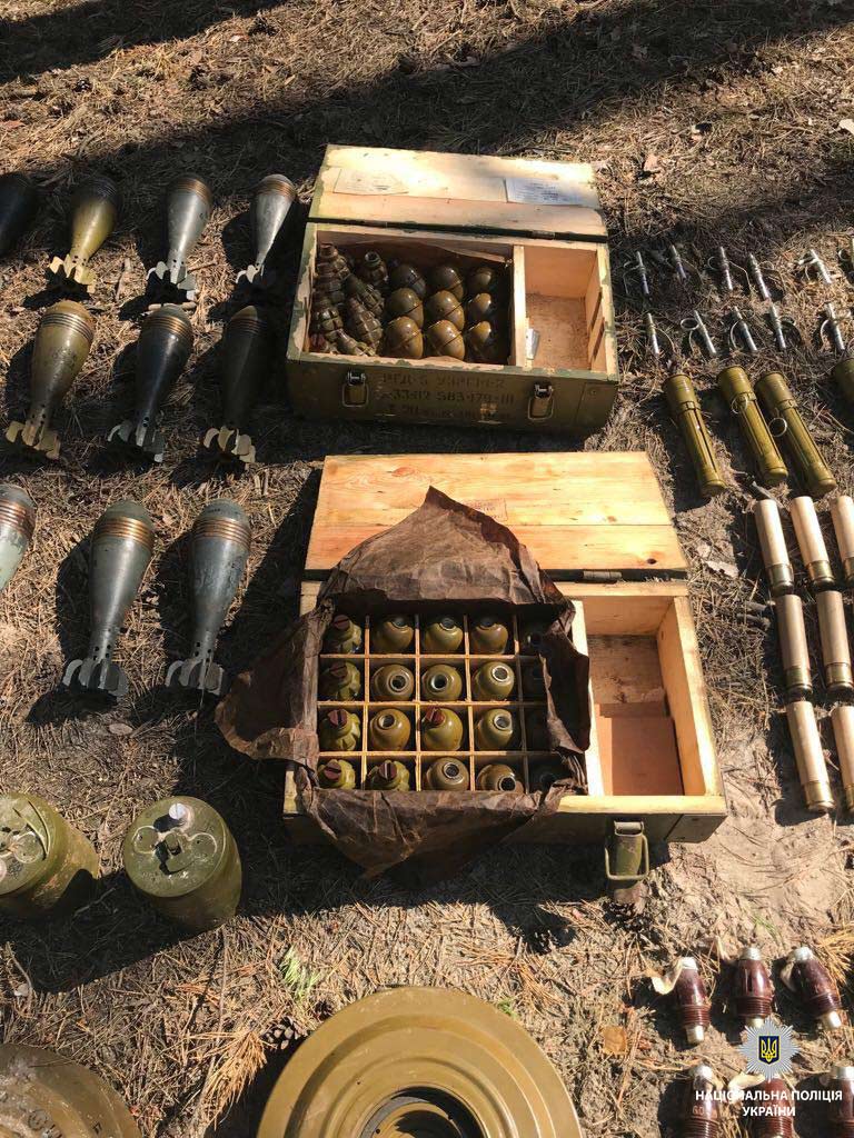 "В замаскированном тайнике неизвестные хранили около 250 гранат ВОГ, 37 мин, 23 гранаты РГД-5 и 13 гранат Ф-1, около 500 патронов калибра 12,7 мм, запалы, выстрелы к гранатомету и другие армейские боеприпасы", - говорится в сообщении.