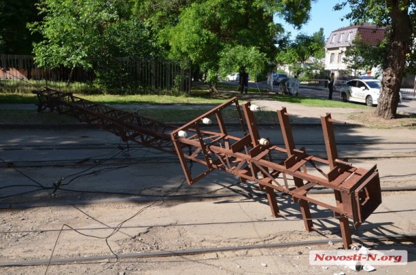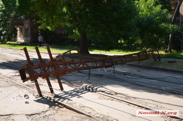 В среду, 23 мая, в Николаеве, на отрезке улицы Потемкинской между Малой Морской и Московской, повалились электроопоры.