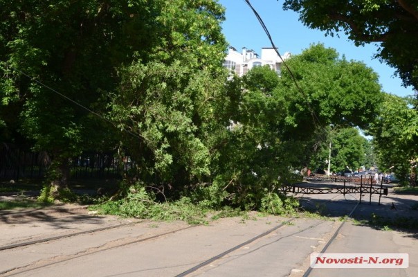 По словам очевидцев, рядом с многоэтажным домом, расположенном на этом отрезке, упало дерево, повалив опору контактной сети трамваев. При падении опора потянула за собой провода и поваленными оказались оказались в общей сложности пять столбов.