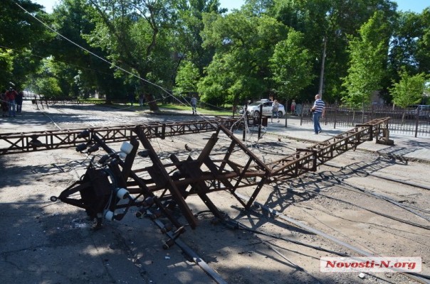 Сегодня, 23-го мая, в городе Николаеве произошло грандиозное событие - его посетил пРезидент украины Вальцман, то бишь Порошенко. Буквально за пару-тройку часов до сего исторического события на улице Потёмкинской рухнуло несколько столбов, которые служили опорами для электрических проводов, в том числе и трамвайных.