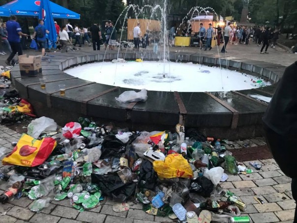 Это фан-зона "Ливерпуля" в парке Шевченко. Вот подумалось - а может это хорошо, что британские СМИ призывают не ехать английских болельщиков в Россию на ЧМ-18?
