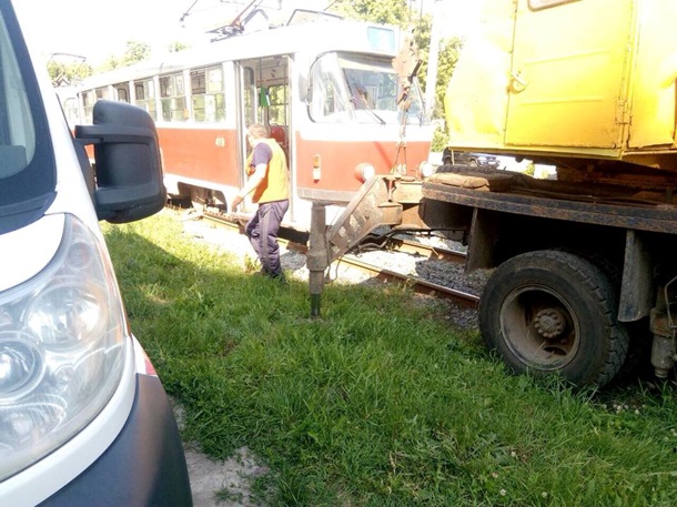 Чтобы извлечь пострадавшего, пришлось поднимать краном трамвай. У мужчины сильно травмированы ноги, но он жив.