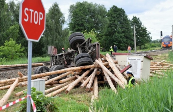 Грузовик, перевозивший дерево, столкнулся с пассажирским поездом, который следовал из Щецина в Зелена-Гуру.