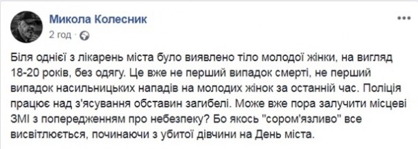 Тем временем депутат городского совета Кривого Рога Николай Колесник написал в соцсети, что это уже не первый случай нападения на девушек за последнее время.