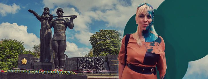После судебного заседания, на котором решалась перспектива демонтажа монумента Славы во Львове, защитницу памятника – местную общественницу Инну Иваночко облили зелёнкой.
