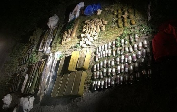 Отмечается, что замаскированный тайник находился на глубине одного метра. Оперативники изъяли оттуда 12 гранат РГД-5, одну гранату РГО, 66 гранатометных патронов к подствольному гранатомету, три гранатомета РПГ-22, 15 РПГ-7, один РПГ-18, 17 мин 76-го калибра, большое количество патронов различного калибра, два запала к УЗРГМ, 20 маршевых двигателей к ручному гранатомету РПГ-7, шесть 40-мм освещаемых патронов и один сигнальный патрон.