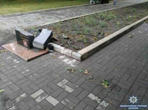 Так, 24 июня в Добропольское отделение полиции поступило сообщение от местного жителя о том, что в городском парке на аллее памяти разбит памятник херою АТЫ.