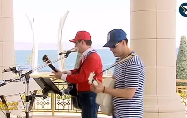 Бердымухамедов сыграл на гитаре, а потом перешел к синтезатору и зачитал свой куплет на туркменском, внук выступал на английском.