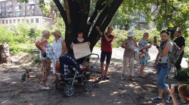 В Запорожье за несколько часов уничтожили сквер ради строительства торгового центра