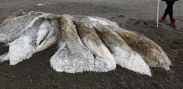 Позже снимки попали в местную лабораторию морских млекопитающих.Там объяснили, что глобстер (неопознанные органические останки, которые выбрасывает на берег) чаще всего оказывается на половину разложившимся китом или акулой.