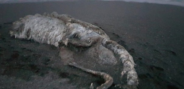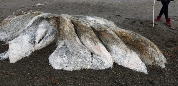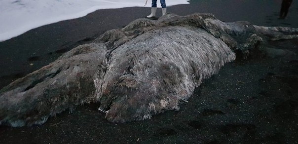 На побережье местная жительница нашла большое существо, выброшенное на берег и покрытое подобием шерсти.