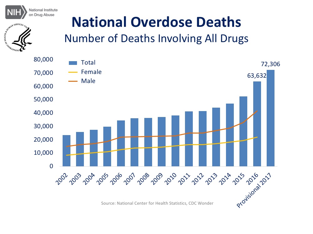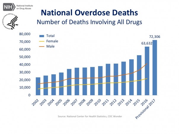 США: В 2017 году от передозировок наркотиками умерли 72,3 тысячи американцев, рост за год на 14%