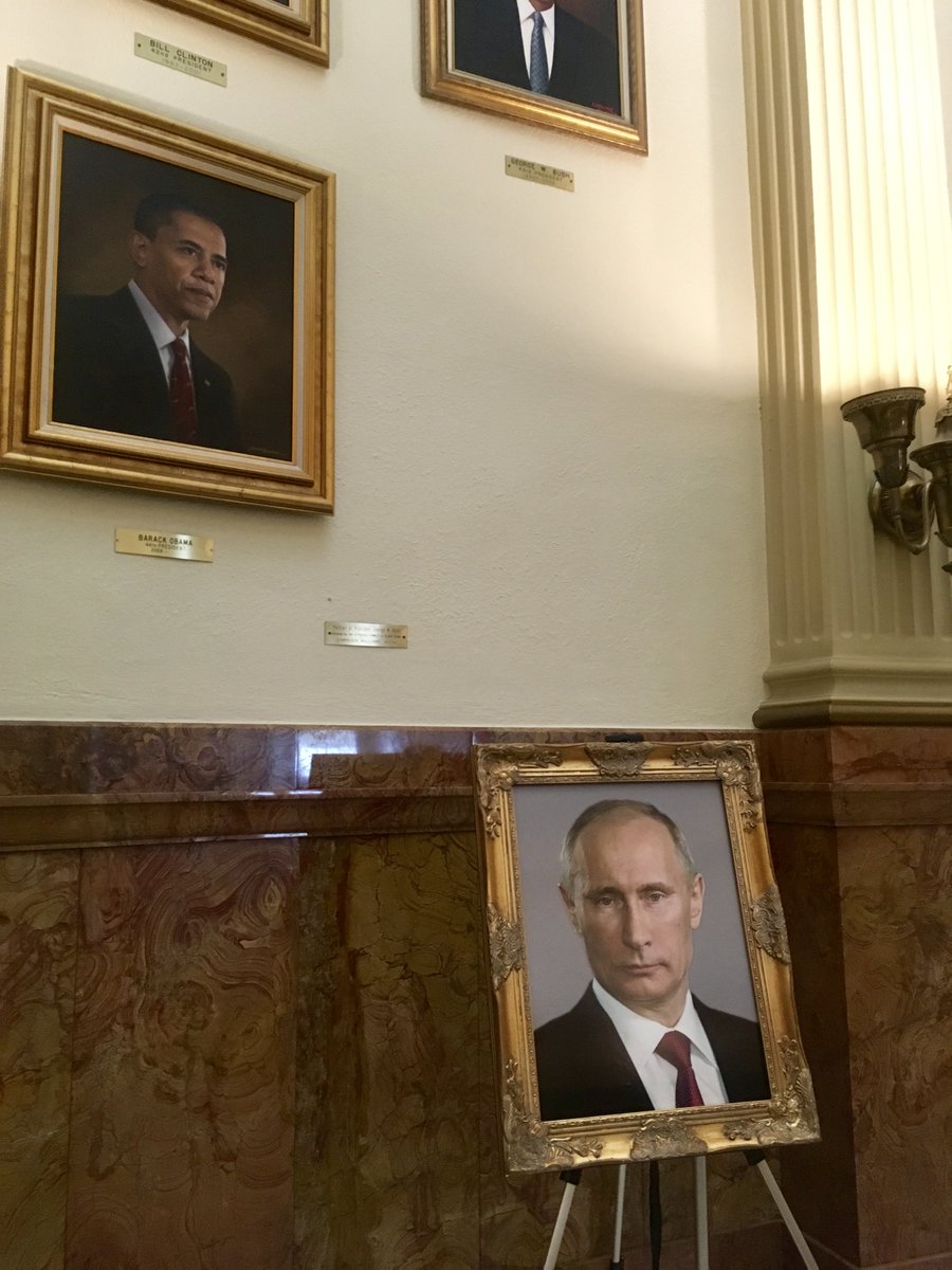В конце июля на месте, где должен был находиться портрет нынешнего американского лидера Дональда Трампа, выставили изображение Путина.