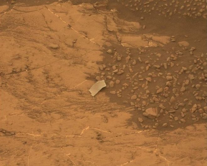 Первоначально учёные приняли его за лист металла и предположили, что это часть обшивки самого марсохода, однако при детальном рассмотрении оказалось, что это не так.