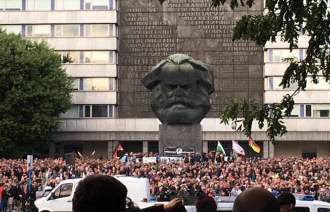 Ориентиром для сбора протестующих в Хемнице стал памятник Карлу Марксу