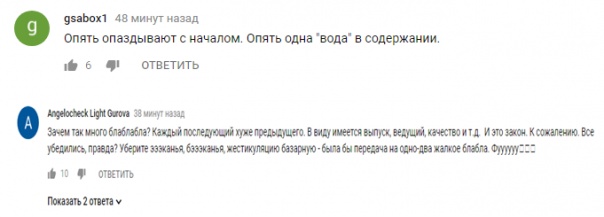 Как вы думаете, почему формат стал таким «зашкварным»? Ну, во-первых, это отчаянная попытка поднять рейтинг и просмотры. Дело в том, что с апреля наблюдается явное падение всех показателей, в частности, из-за провала Соболь. Но вряд ли это спасет положение дел. Их и так смотрит где-то тысяча человек, что не густо с их-то амбициями.