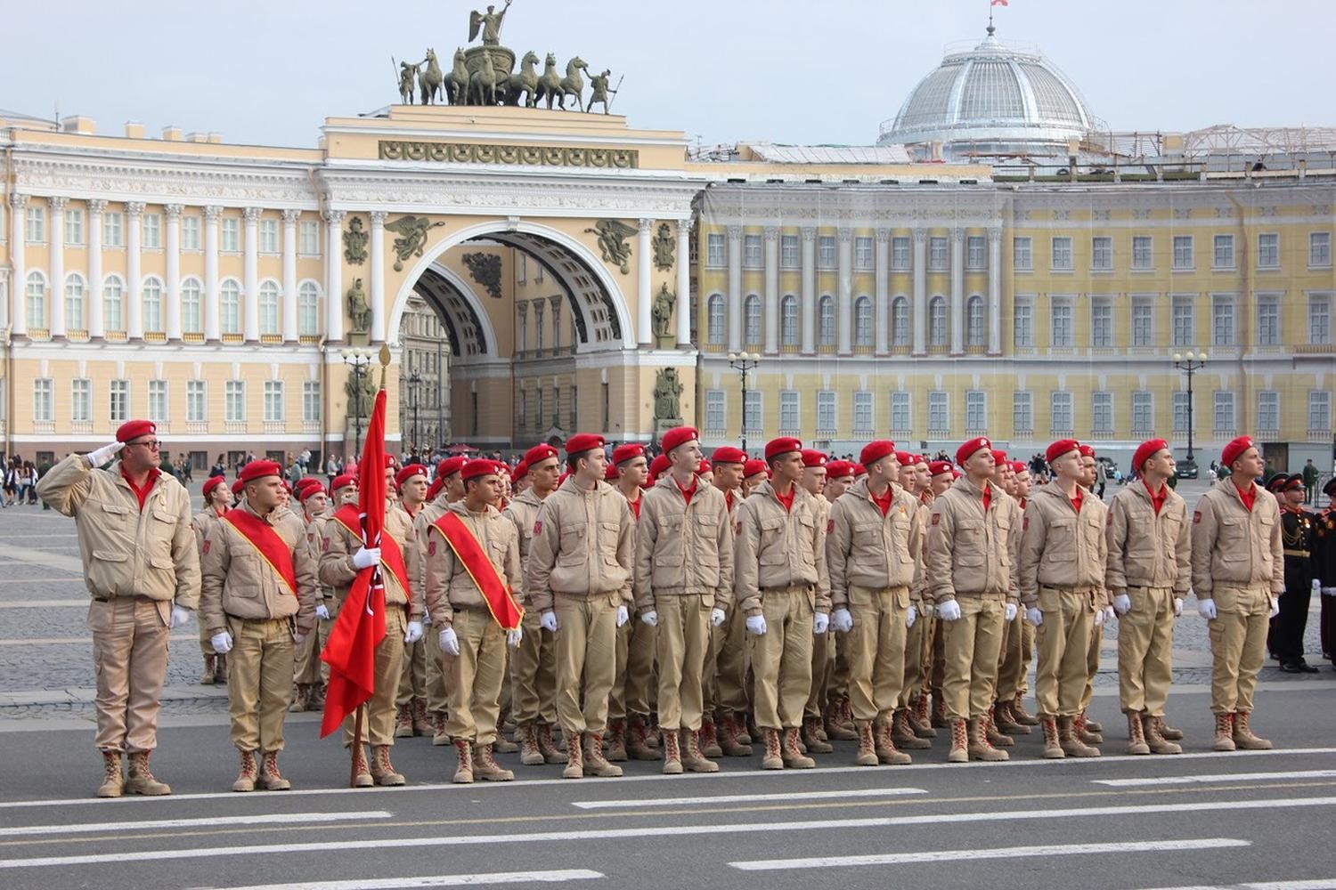 В Петербурге же финансируют отряды и муниципалы, и спонсоры, а также крупные спортивные и общественные организации – ЦСКА, ДОСААФ и другие. «Родители не тратят ни копейки», - ранее заявлял начальник штаба регионального отделения Игорь Коровин. В начале сентября на Дворцовой площади в Петербурге состоялся первый за сто лет военный парад в честь празднования Дня российской гвардии. Наряду с военнослужащими ЗВО и курсантами военных училищ по главной площади Северной столицы прошел парадный юнармейский расчет из 84 человек. Помимо стандартных элементов одежды юноши и девушки были в белых перчатках, а знаменосцы надели еще и широкие красные ленты через плечо.