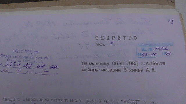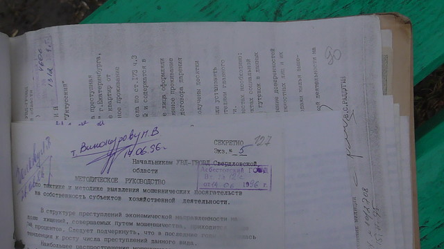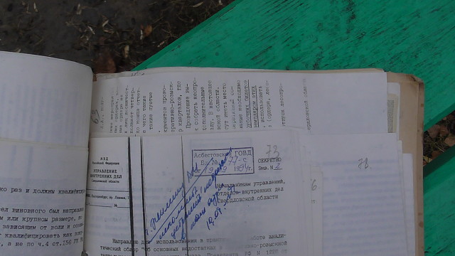 "Выкидывая мусор на помойку, обнаружил рядом с контейнерами какие-то папки. Внимания бы не обратил, но в глаза кинулось, что в правом верхнем углу у некоторых — стоит гриф "секретно". Заинтересовался, поднял, начал листать — действительно секретные документы нашей асбестовской полиции, есть старые (но гриф не погашен), есть посвежее", — написал пользователь Митя Гилязов.