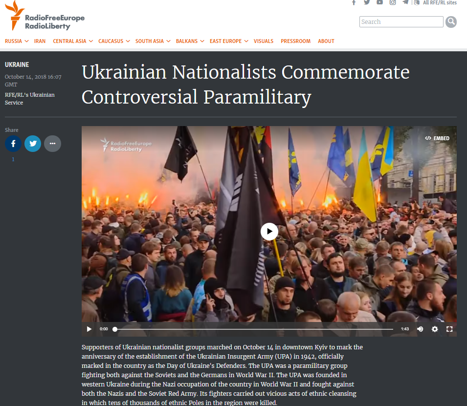 В заголовке к видео, посвященному маршу и размещенному на YouTube, "Радио Свобода" называет УПА "воинским формированием нацистской эры".