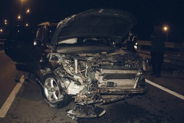Авария случилась около 00:30. По предварительной информации, Hyundai на дипломатических номерах ехал по Дарницкому мосту в сторону Надднепрянского шоссе. На съезде с моста водитель автомобиля не справился с управлением и врезался в отбойник. От удара машину начало кидать со стороны в сторону.