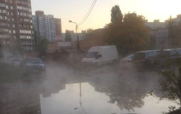 В Киеве из-за прорыва трубы дворы залило кипятком