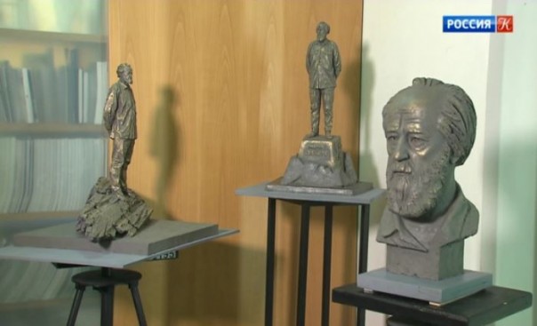 "Скульптура Александра Солженицына отливалась из бронзы по частям. Собрать всё воедино — самый главный этап, контролирует который автор памятника Андрей Ковальчук... Сложенные за спиной руки — это и характерная особенность, и отсылка в прошлое, говорящая о времени, когда Солженицын был заключенным концлагеря. Впрочем, Андрей Ковальчук говорит, что изобразил писателя во вполне определённый период — после его возвращения из Америки. «Он был одобрен жюри. И Наталия Дмитриевна Солженицына также увидела в проекте достаточно близкое решение к тому, как она бы видела памятник Александру Исаевичу», — рассказал народный художник России Андрей Ковальчук. На постаменте изображены герои произведений Александра Солженицына «Матрёнин двор» и «Один день Ивана Денисовича». А сам постамент будет обрамлять гранитная глыба — тоже определённый символ. «Ряд произведений возник в годы заключения и этот момент выхода из такого замкнутого пространства, он раскрывает в какой-то степени образ», — добавил Андрей Ковальчук. Наконец, все детали приварены, скульптура отрывается от земли, и фигура Солженицына предстаёт во всей своей монументальности. Памятник ему создается не просто в той же самой литейной мастерской, но ещё и в тот самый момент, когда здесь идёт работа над бюстом Иосифу Виссарионовичу Сталину", - сообщает телеканал "Культура".