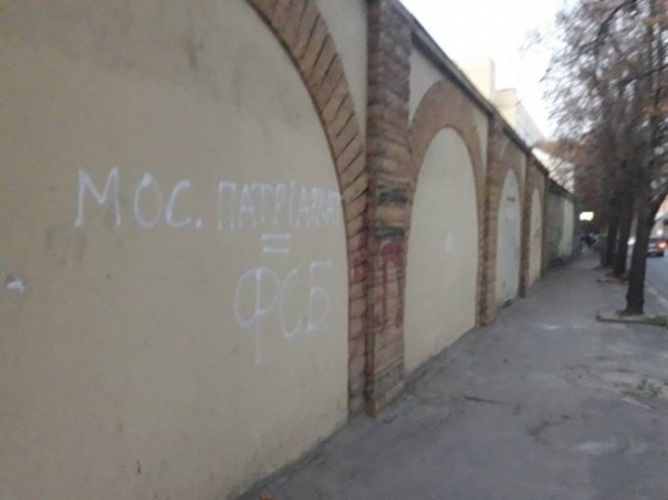 "Сегодня у так называемых "храмов" московского патриархата во Львове на улице Антоновича, на проспекте Красной Калины и улице Короленко появились надписи "московский патриархат - филиал ФСБ". Неизвестные патриоты, наверное, пытались донести до львовян, которые не в курсе, что во Львове действуют три филиала ФСБ РФ под видом христианских церквей", - говорится в сообщении.