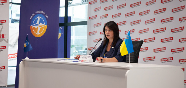 Разумеется, бывшая порноактриса всецело поддерживает политику киевской хунты, мечтает о вступлении Бандеростана в НАТО, демонстрирует ненависть к России и призывает к "скоординированному ответу Североатлантического альянса и Украины на российскую агрессию". Автор законопроектов о лишении российских журналистов аккредитации в госорганах Незалежной, о запрете деятельности Российского центра науки и культуры, о внесении изменений в законодательство относительно "восстановления курса Украины на членство в НАТО", об уголовной ответственности за "неповиновение в сфере защиты территориальной целостности Украины", о "регламентации использования мобильной связи украинскими военными в зонах ведения боевых действий (для предотвращения наведения огня противника по координатам излучения телефонов)". На заседании межпарламентского совета Украина–НАТО представила доклад о "подрывных информационно-психологических операциях РФ в социальных сетях". В штаб-квартире НАТО представила доклад о "размещении вооружения России в Крыму, перебрасывании российского оружия с полуострова в Сирию и использовании его для военной конфронтации со странами-членами НАТО". В ноябре 2016 года передала германскому кацлеру Ангеле Меркель видеопрезентацию о "российских войсках на Донбассе". В рамках межфракционного объединения "Равные возможности" занималась вопросами гендерного равенства женщин-военнослужащих в ВСУ и карательных формированиях. Обвинила Юлию Тимошенко в "сознательном участии в информационной кампании на стороне противника Украины — Российской Федерации". Настаивает на "силовых действиях" в Азовском море.
