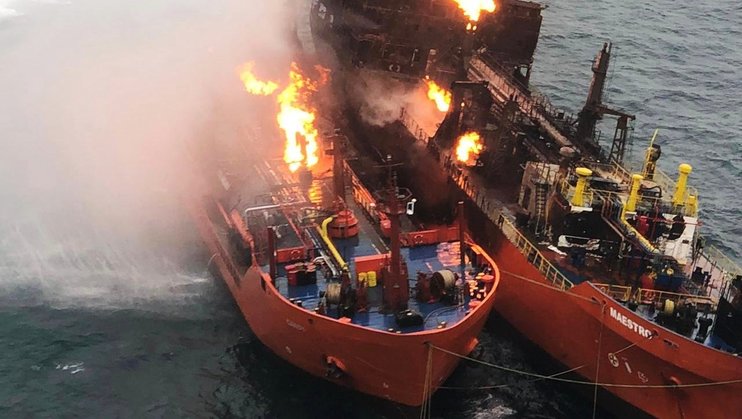 Как сообщалось, в понедельник вечером в районе Керченского пролива во время передачи топлива с борта на борт вспыхнул пожар на судах под флагом Танзании "Канди" и "Маэстро". Всего на них было 32 человека: 12 человек удалось спасти, обнаружено 10 тел, 10 человек числятся пропавшими без вести. Спасенные моряки во вторник вечером доставлены в порт Керчи.