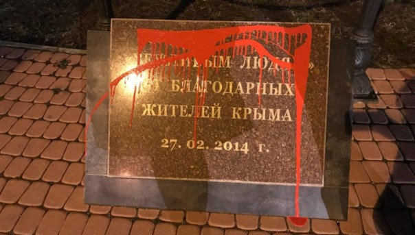 В центре Симферополя пьяный мужчина облил краской памятник "вежливым людям". Вандал задержан сотрудниками правоохранительных органов.