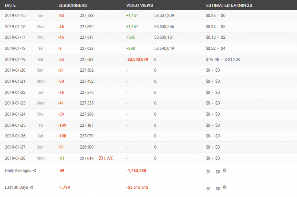 19 января с канала Собчак пропали абсолютно все ролики. По данным Socialblade, на удаленных видео было 53,5 млн просмотров. Судя по первой публикации, журналистка планирует выпускать на нем видео в формате интервью. Источник